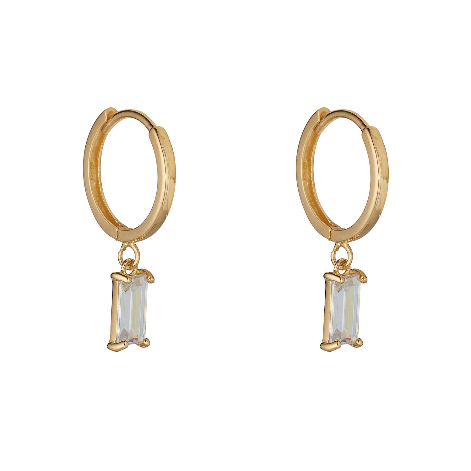 Beautiful 9ct Yellow Gold Hoop earrings with a rectangle c/z drop