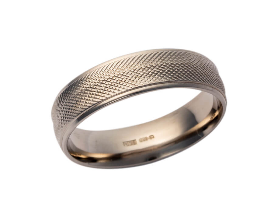 Gents 9ct White Gold Wedding Band Pattern 17 6mm wide.