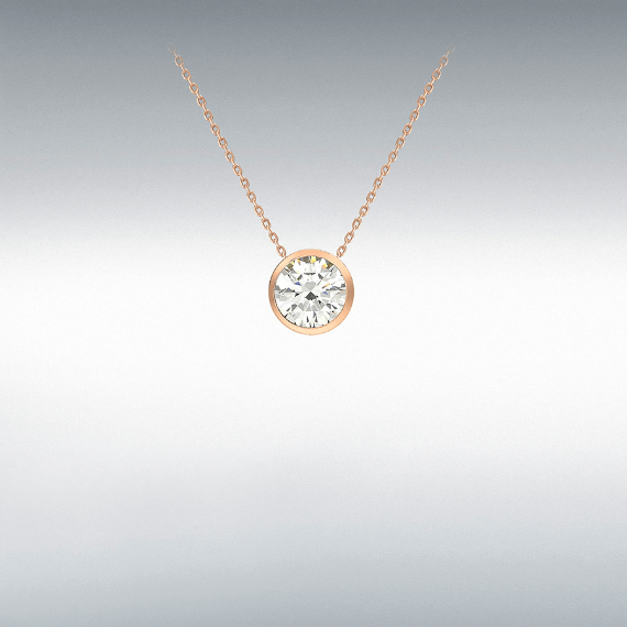 Beautiful 9ct Rose Gold Cubic Zirconia Pendant in a rubover setting on a 18″ Chain.
