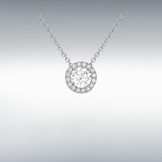 White Gold Halo Cubic Zirconia Pendant